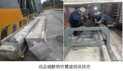 為提升硫酸鈉的品質,減少系統(tǒng)非計劃停機等風險,威遠藍鼎生產部在運維部、供應部大力支持下決定將兩條螺旋技改成輸送皮帶,2023年1月14日,蒸發(fā)濃縮停機檢修,生產部長黃安軍、楊平、宋雨鵬協(xié)同檢修班長和生產技術員張衛(wèi)健,集中威遠藍鼎檢修骨干對硫酸鈉兩條螺旋開始技改工作,18:30硝螺旋改輸送皮帶技改完成進行試車,1月15日凌晨3:00帶料試車正常,經過1個月使用觀察,本次技改較螺旋故障率更低,物料輸送更松散、均勻,也大大改善了干燥后硫酸鈉積塊等問題,同時也得到了川威集團銷售的認可,體現(xiàn)了公司敢于創(chuàng)新的精神。