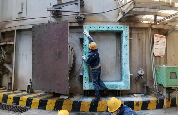 本次大修的重頭戲是為脫硫塔安裝新的超大人孔門。該人孔門的成功安裝,實(shí)現(xiàn)了微型挖掘機(jī)直接進(jìn)入塔體內(nèi)部進(jìn)行沉淀物挖掘作業(yè),大幅提升了清渣效率和作業(yè)安全性,徹底改變了以往人工清渣作業(yè)強(qiáng)度大、效率低的局面。同時(shí),檢修團(tuán)隊(duì)更換了主塔DN1600不銹鋼回流直管段,從根本上解決了原襯膠管耐磨性不足、易損壞的技術(shù)難題,有效延長(zhǎng)了設(shè)備使用壽命,降低了維護(hù)成本。